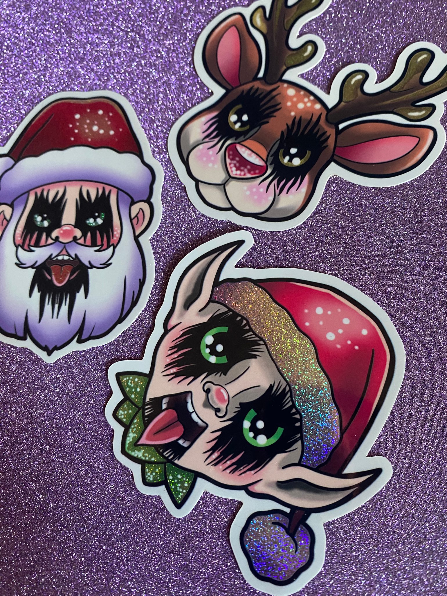 Includes 3 stickers. Santa. Elf. And Rudolph.